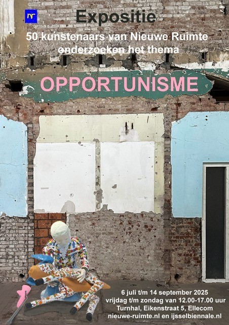 Groepsexposite ‘Opportunisme’ van kunstenaarscollectief De Nieuwe Ruimte uit Velp is dit jaar aanwezig op de IJsselbiënnale van 6 juli t/m 14 september in de turnhal in Ellecom. Welmoed Glasz neemt deel met twee objecten: